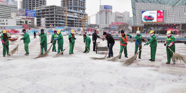 雖然雪下的不大,但氣溫驟降、風(fēng)雪交加還是給掃雪人員帶來了諸多不便,可這沒有影響各項目部團(tuán)隊清理積雪的熱情,在項目經(jīng)理的帶領(lǐng)下,各班組成員對自己主管的片區(qū)進(jìn)行認(rèn)真清掃,確保能夠在業(yè)主上班前讓各主干路內(nèi)的行人及車輛暢通無阻,把下雪帶來的影響降至最低。