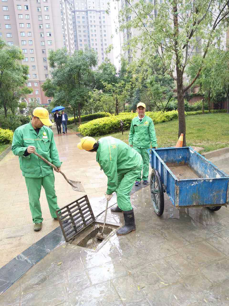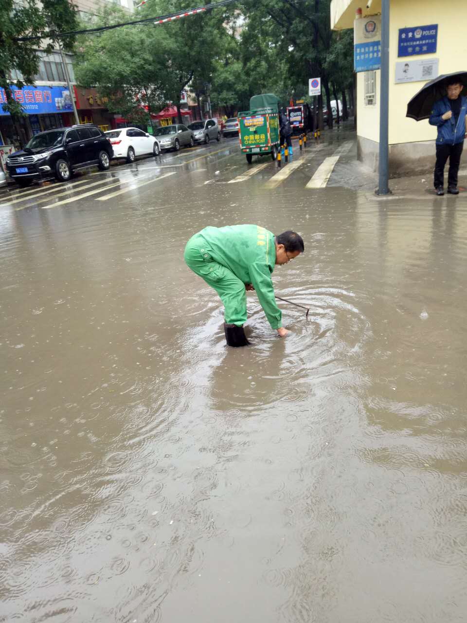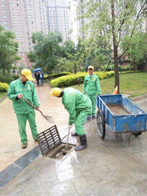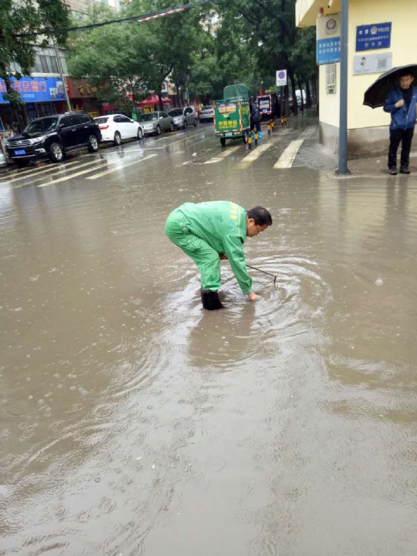 暴雨來襲,城關(guān)物業(yè)每位員工都堅(jiān)守在抗擊暴雨的第一線。保安們?cè)陲L(fēng)雨中麻利的扛起一袋袋防汛沙袋壘在車庫、地下室等低洼地區(qū)的入口,以防雨水倒灌。保潔員們用清潔工具不停地將室內(nèi)積水往外排,為了保證順利排水,在暴雨中查看下水道口,不顧水浸濕褲管和衣袖,直接將手伸進(jìn)下水道口,把灌入的雜物清出。為了更迅速的排水,他們沒有打傘,兩手握著棍子奮力的疏通下水道。技術(shù)維修部的同事們時(shí)刻查看設(shè)備是否進(jìn)水,是否正常運(yùn)行。雖然是在室內(nèi),可是他們也已經(jīng)渾身大汗,即使是這樣,也一刻不放松。據(jù)第一事業(yè)部王總介紹,此次暴雨雖說突然,但是對(duì)于各項(xiàng)目來說卻一點(diǎn)也不突然,因?yàn)樽?/span>4月份開始,各項(xiàng)目部就已經(jīng)成立了應(yīng)急小組,儲(chǔ)備了防汛物資,如沙袋、手電等,再加上日常的演練,每個(gè)人都已經(jīng)對(duì)自己的工作輕車熟路了,在這這樣的前提下安排工作省時(shí)又高效。因此,此次的防洪抗暴工作才能在最短的時(shí)間內(nèi)達(dá)到最好的效果。