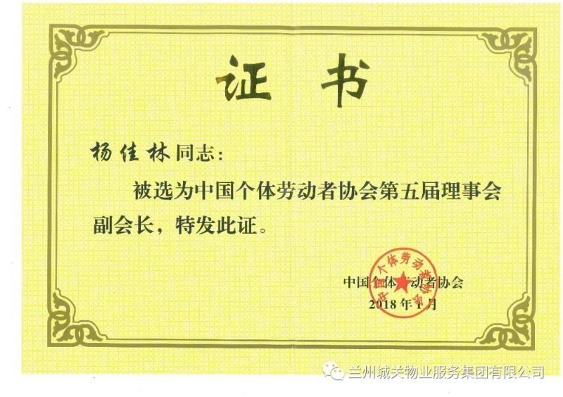 城關物業(yè)集團CEO楊佳林當選中國個體勞動者協(xié)會第五屆理事會副會長