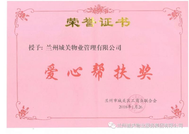 城關(guān)物業(yè)服務(wù)集團榮獲“愛心幫扶獎”