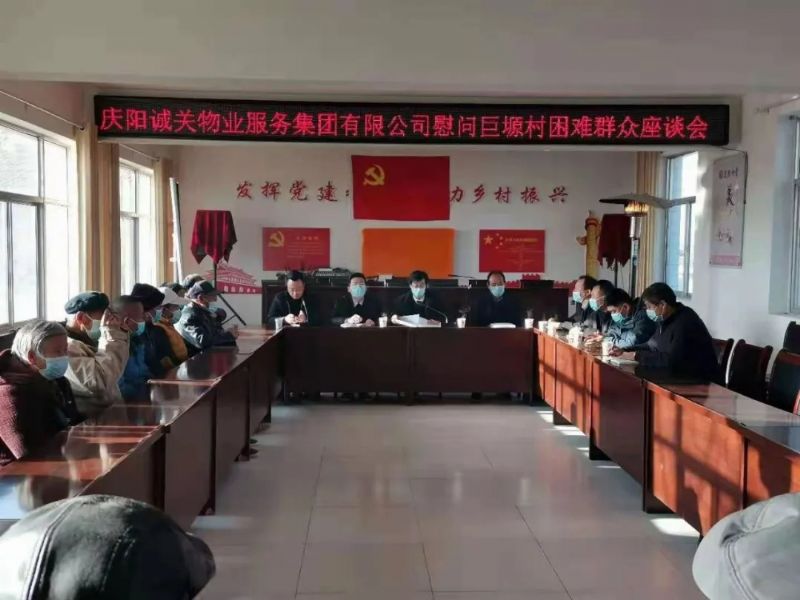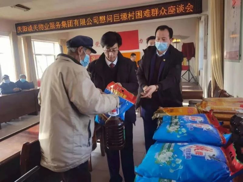 春節(jié)臨近,為了讓貧困群眾能度過一個(gè)快樂祥和的節(jié)日,感受社會帶來的溫暖,蘭州城關(guān)物業(yè)服務(wù)集團(tuán)有限公司慶陽子公司在慶陽市西峰區(qū)溫泉鎮(zhèn)巨塬村舉行了春節(jié)困難慰問活動。